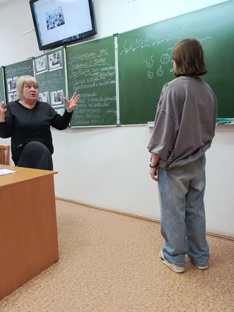 10 декабря 2024 года в рамках Недели предметов гуманитарного цикла для обучающихся 9х классов было проведено открытое занятие "Библиотечный час "О семье в стихах и живописи".