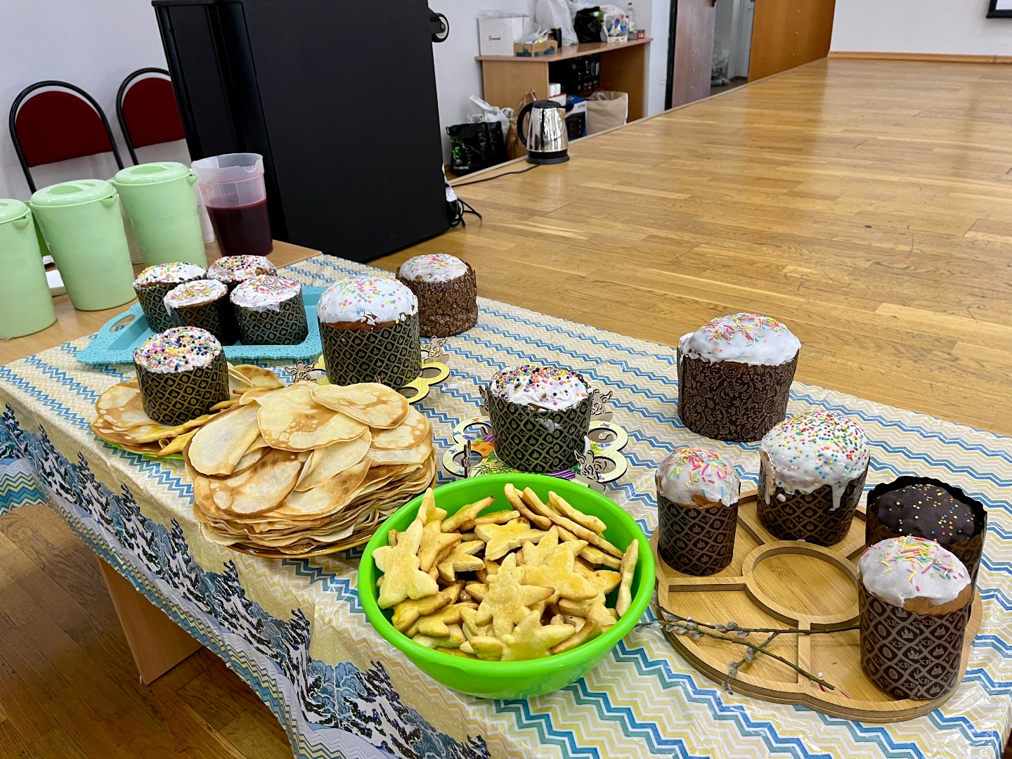 Обучающиеся раскрашивали яйца в разных техниках, пекли блины, орешки, печенье и лепили вареники.