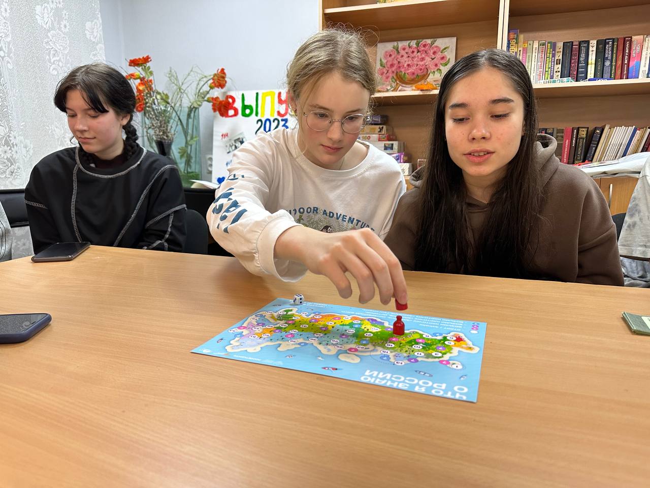 В рамках праздника, для обучающихся была проведена настольная игра «Что я знаю о России». Обучающиеся во время игры отвечали на вопросы заданий 3-х категорий «География», «История» и «Интересный факт». Передвижение на игральной карте осуществлялось с помощью правильных ответов, команда которая больше всех ответила правильно на вопросы пришла первая к финишу.