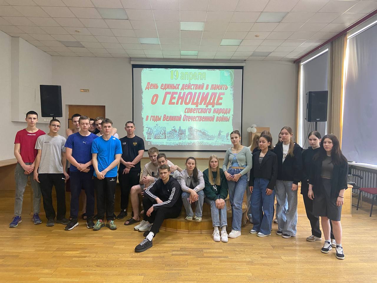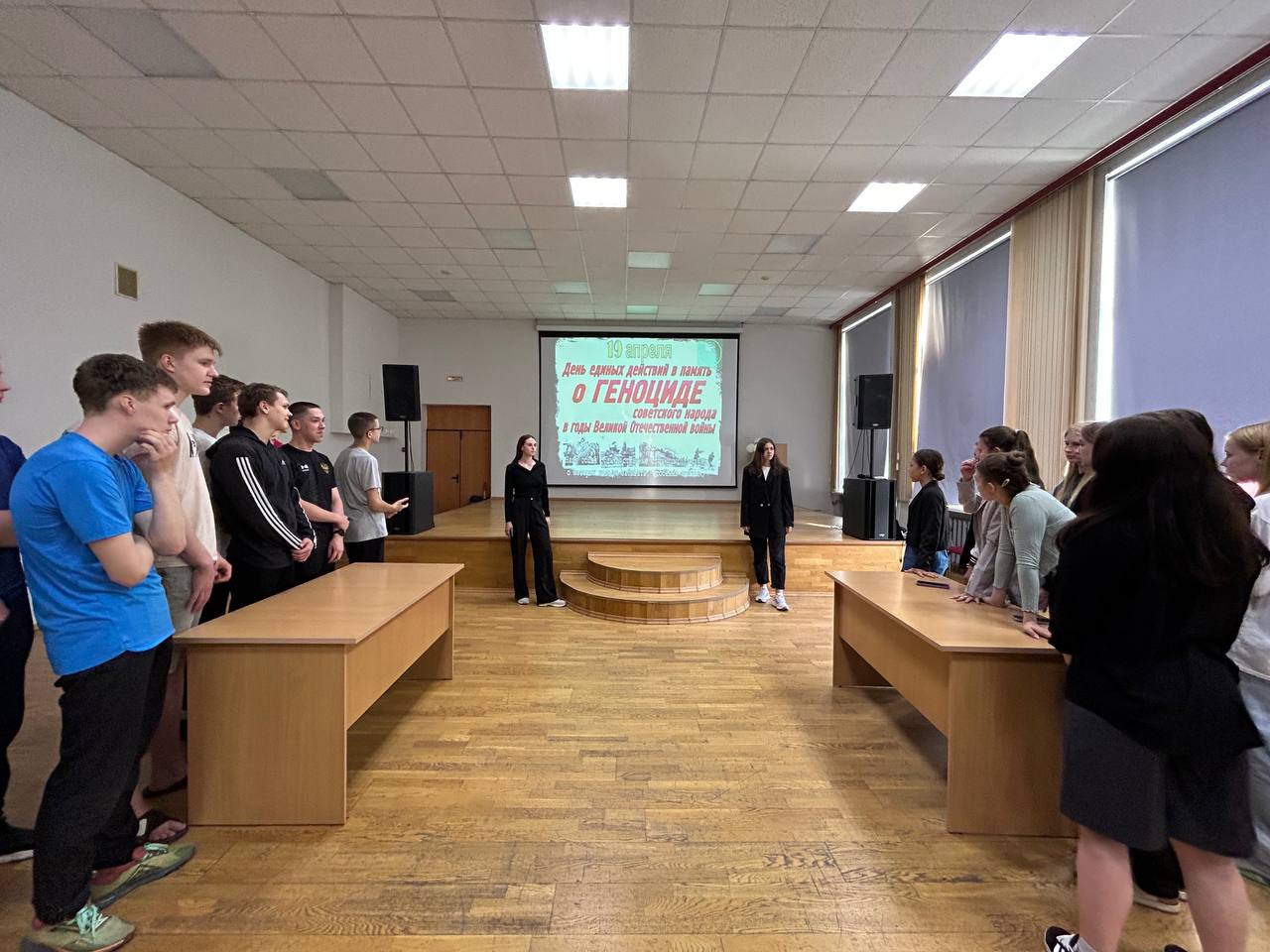 Обучающимся был проведен урок-реконструкция «Без срока давности». Данный урок посвящен памяти жертв геноцида Советского народа от немецко-фашистских захватчиков в годы Великой Отечественной войны 1941 – 1945 гг.