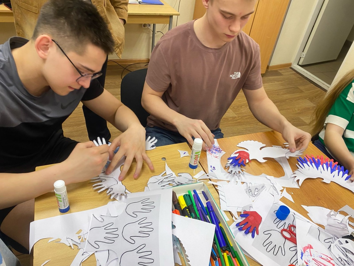 Завершилось празднование созданием аппликации голубя - символом Мира!