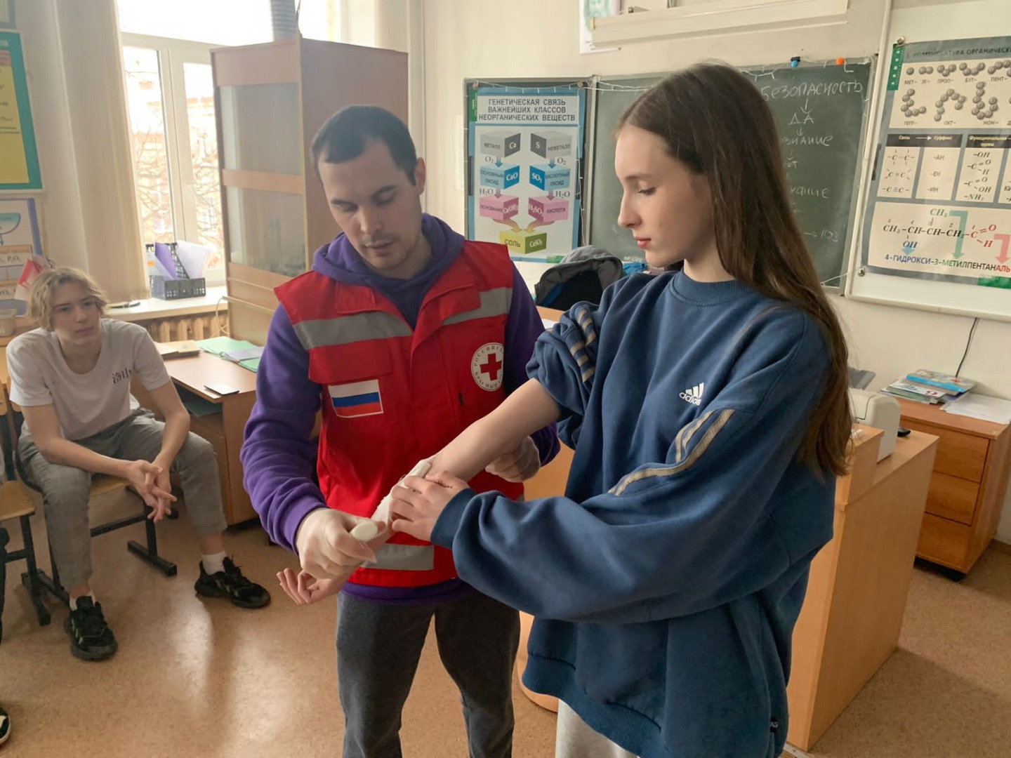 Для обучающихся 8-10 классов проведена лекция по оказанию первой помощи.