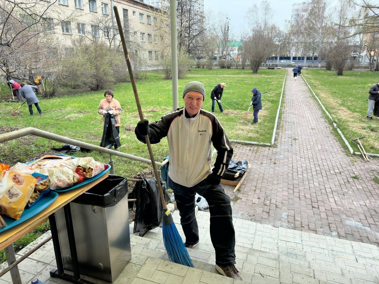 Для поднятия настроения субботничающим было организовано музыкальное сопровождение. А по завершении субботника всех ждал горячий чай со сладостями.