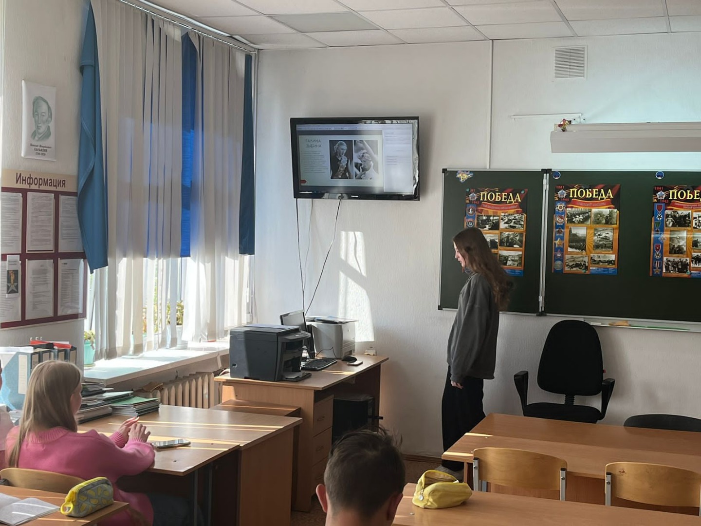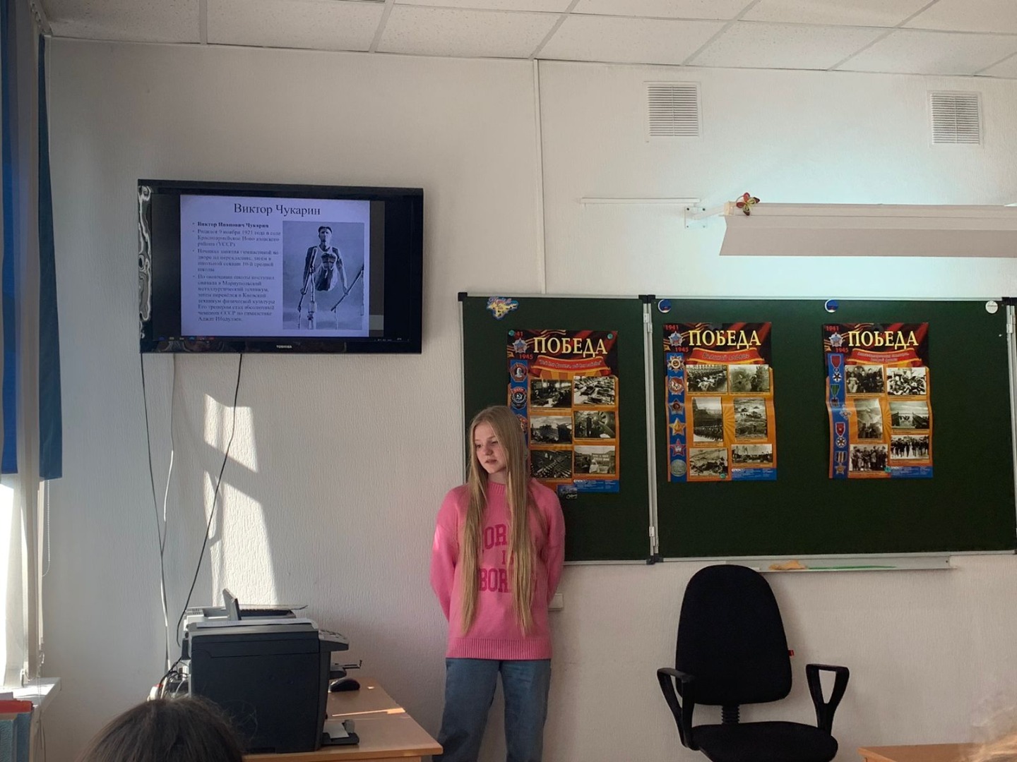 Обучающимися был подготовлен доклад о Галине Зыбиной, пережившей всю болкаду в Ленинграде и получившей медаль за его оборону, а в послевоенное время ставшей Олимпийской чемионкой, поставившей не один мировой и советский рекорд.