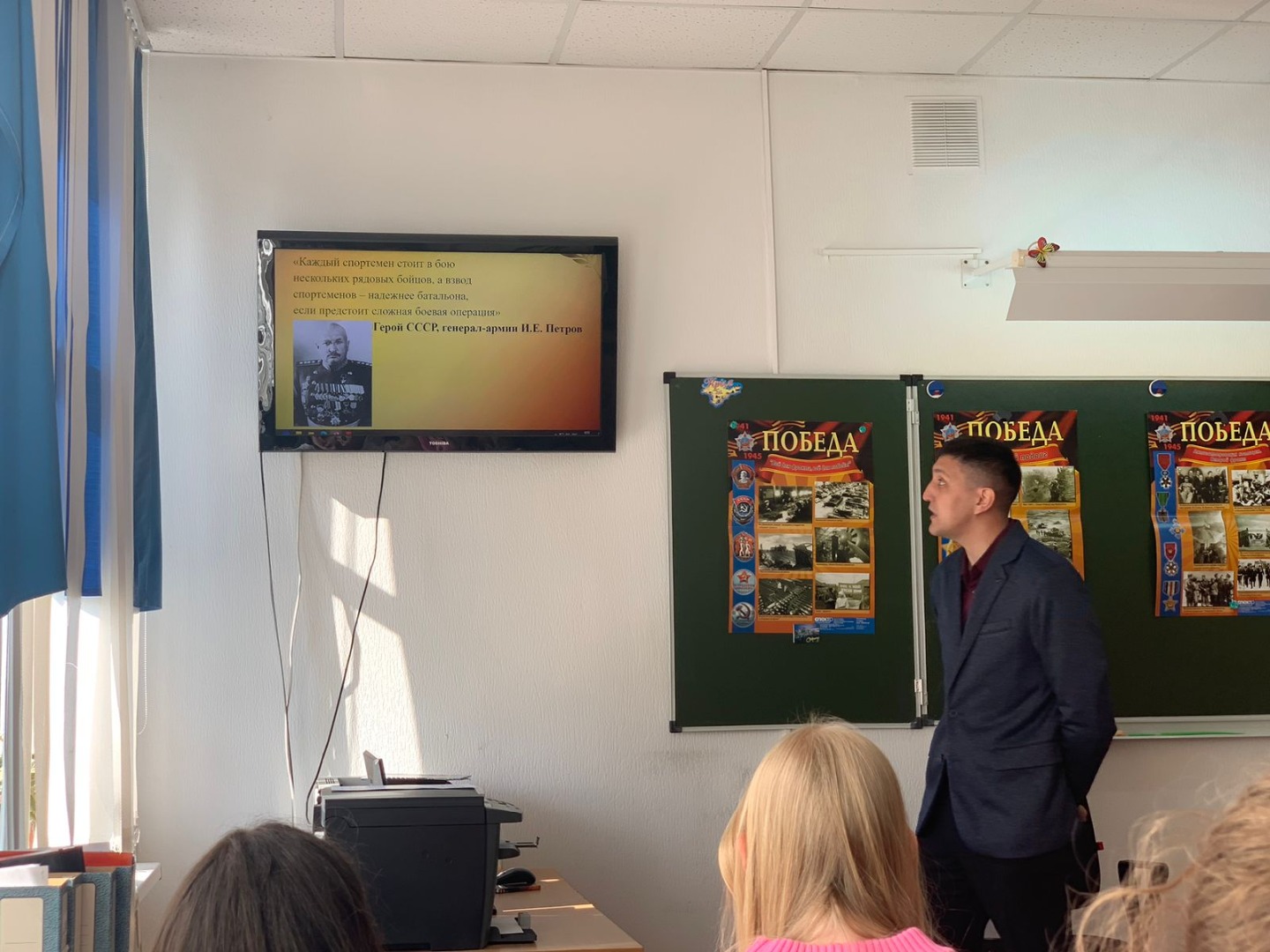 В контексте празднования Дня Победы и сохранения исторической памяти, учителем истории Евгением Константиновичем Фартеевым в Училище был проведен открытый дискуссионный урок истории на тему "Роль фронтовиков-олимпийцев в развитии отечественного спорта".