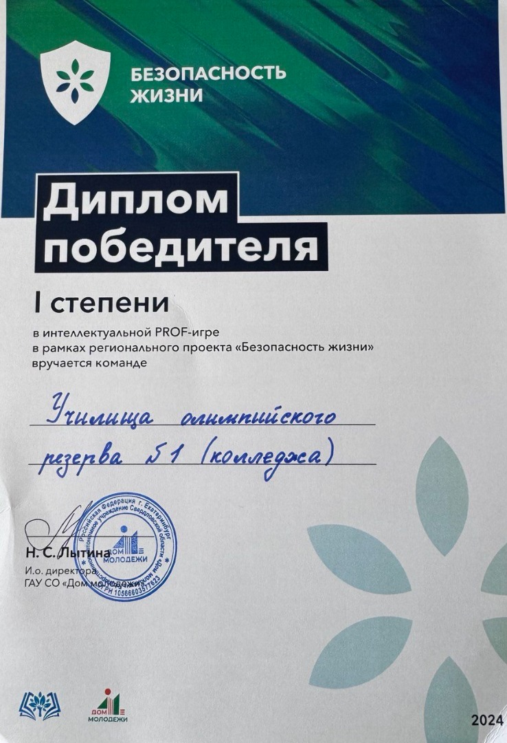 Команда Училища олимпийского резерва №1 одержала блестящую победу в интеллектуальной PROF-игре, прошедшей в рамках регионального проекта "Безопасность жизни"!