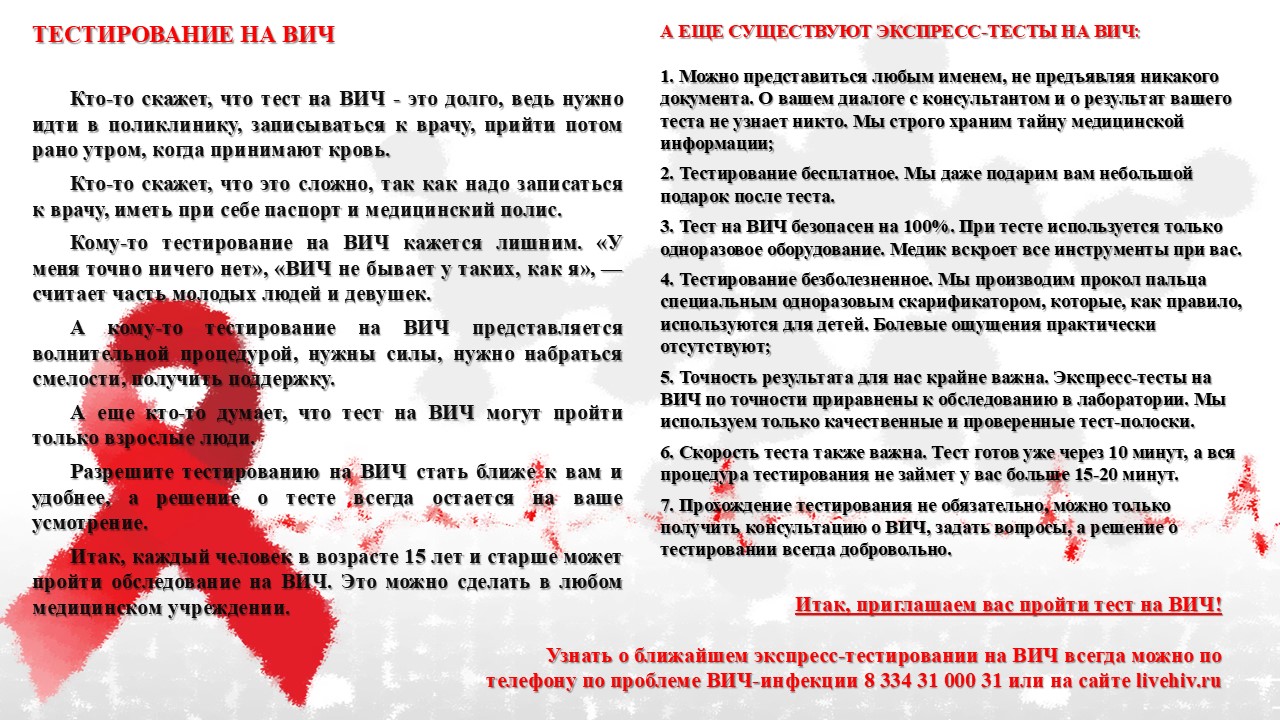 Сайт центра СПИДа (контакты, новости, рубрика “Вопрос-ответ” и др: https://livehiv.ru/