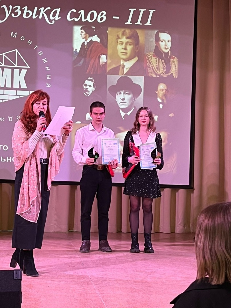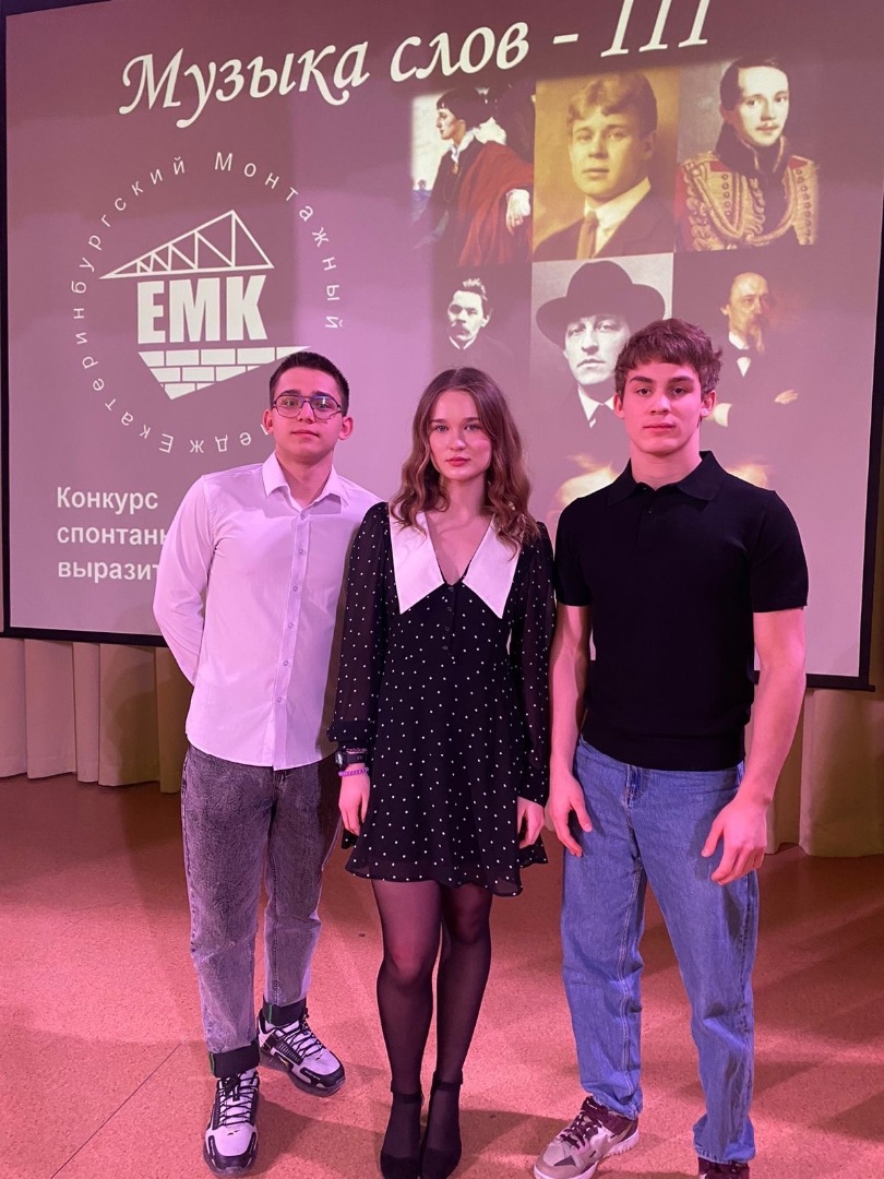 20 марта 2024 года в ГАПОУ СО «Екатеринбургский монтажный колледж» в рамках реализации комплекса патриотических проектов и программ Министерства образования и молодежной политики Свердловской области состоялся конкурс спонтанного выразительного чтения «Музыка слов», посвященный Международному женскому дню, среди обучающихся профессиональных образовательных организаций Свердловской области.