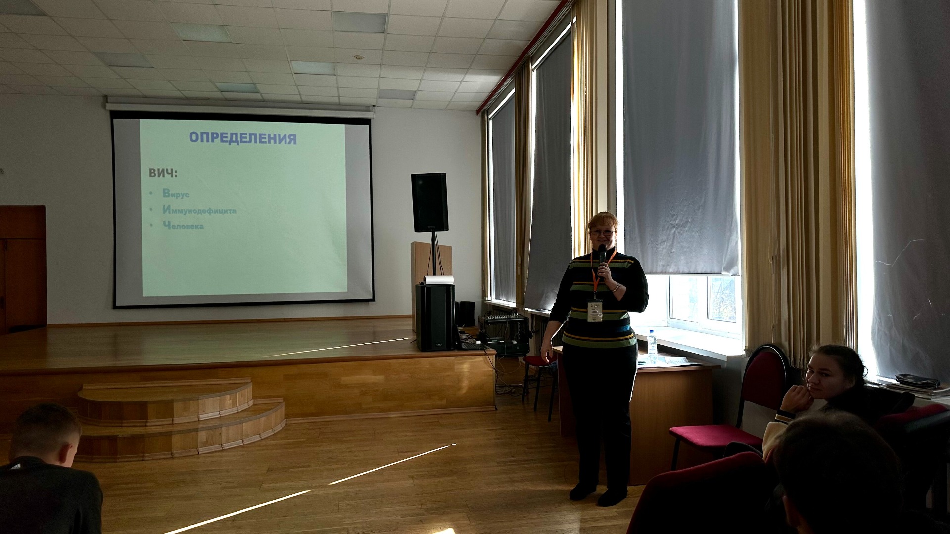10 октября для обучающихся 10, 11 классов и студентов училища , специалист по работе с молодёжью МБУ ЦСОМ Наталья Воронкова провела лекцию в рамках проведения акции "Начни с себя, живи безопасно". Целью акции является повышение уровня информированности молодежи города Екатеринбурга о проблеме распространения ВИЧ-инфекции.