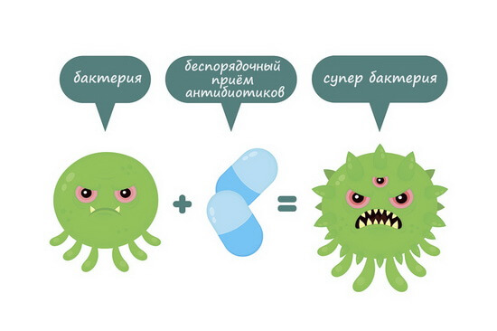 Нерациональное назначение и применение антимикробных препаратов приводит к устойчивости бактерий и, при возникновении бактериального заболевания, тот антибиотик, который назначался нерационально, может не подействовать.