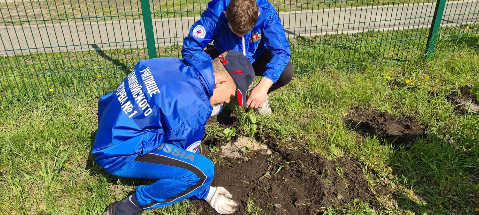 Обучающиеся училища олимпийского резерва посадили кусты прекрасной белой сирени