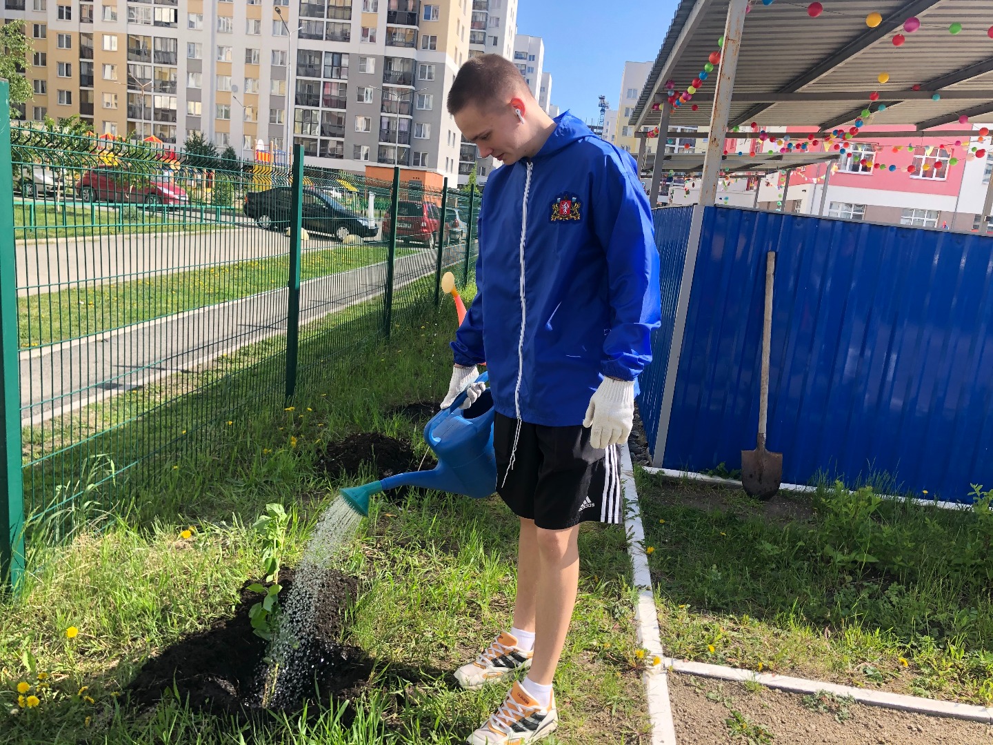Обучающиеся училища олимпийского резерва, совместно с воспитателями, ко дню защиты детей посадили кусты прекрасной белой сирени. Высадку деревьев производили в детском саду №43, который находится по адресу Рябинина 27.