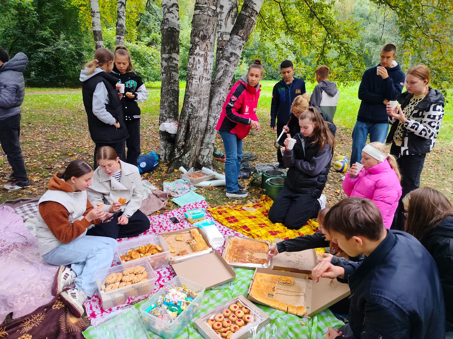 6 сентября педагог-психолог Никифорова Дарья Михаййловна, заместитель директора по воспитательной работе Павлова Татьяна Александровна и советник директора по воспитанию Николаева Юлия Александровна организовали в парке пикник для обучающихся 7 и 8 классов.