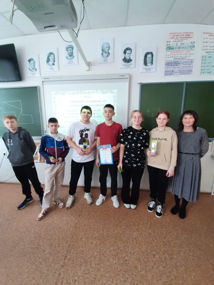 В конце урока каждый желающий смог узнать свой характер, нарисовав человечка из геометрических фигур. Команда-победитель была награждена грамотами и сладкими призами. Урок-соревнование провела Медведева Ольга Петровна, за работу на этом уроке все участники получили высокие оценки и отличное настроение!