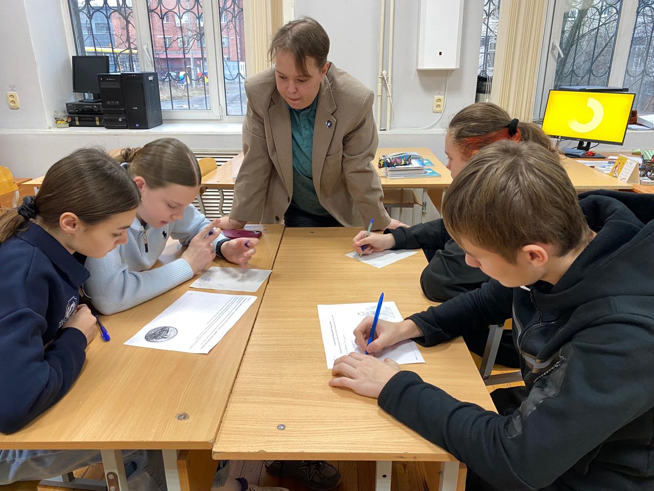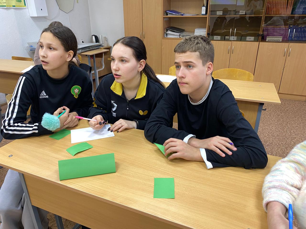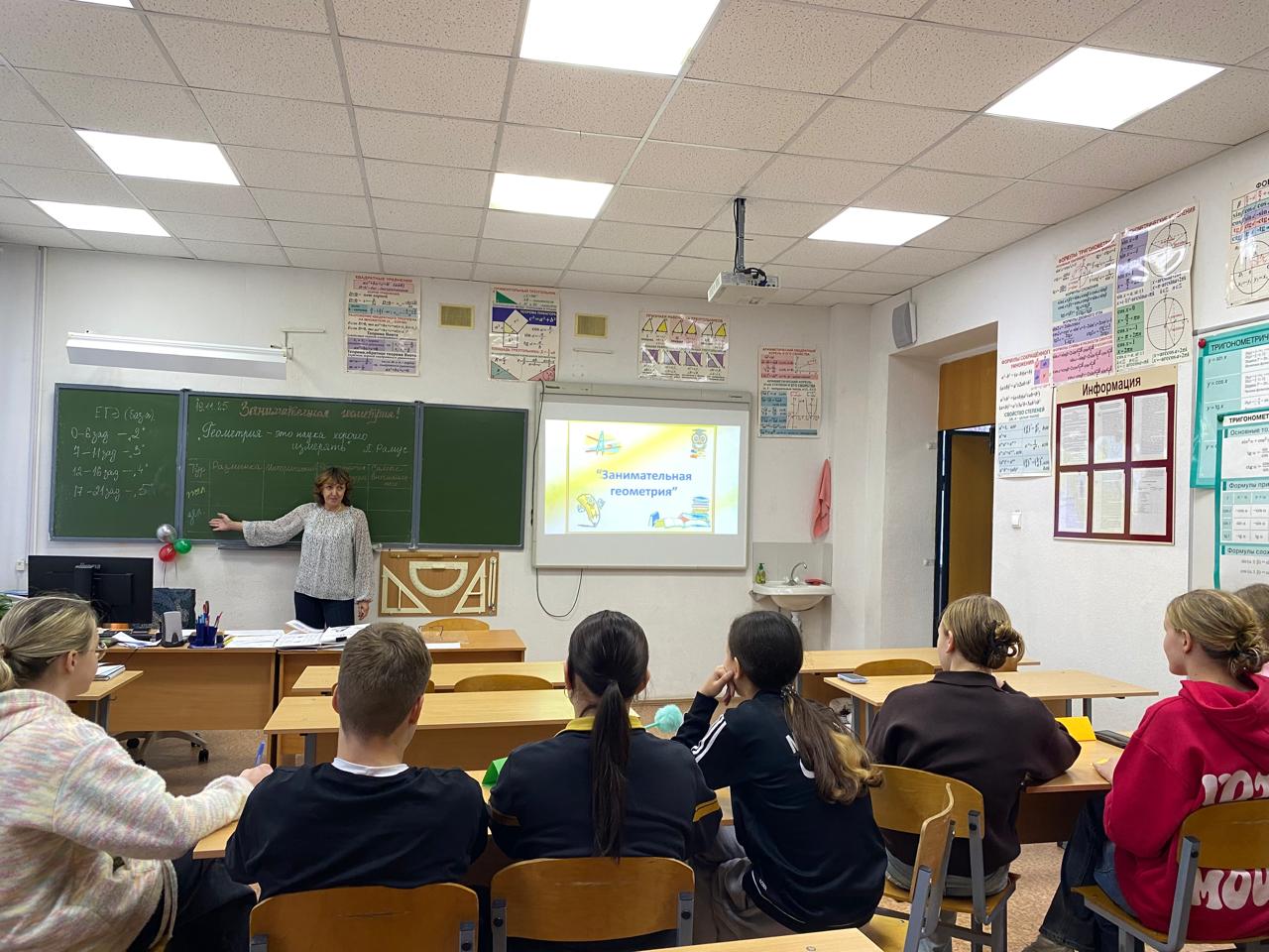 В 7 В классе учитель Русина Татьяна Григорьевна провела игру «Занимательная геометрия». Учащиеся разделились на две команды — зеленых и желтых — и отвечали на вопросы о геометрических фигурах, углах, известных исторических личностях в области геометрии, а также решали логические задачи. Победу одержала команда зеленых.