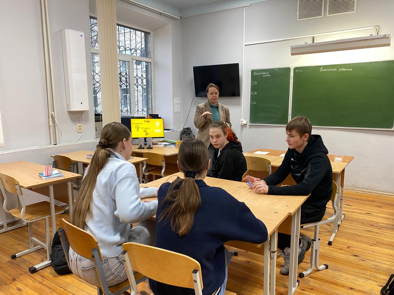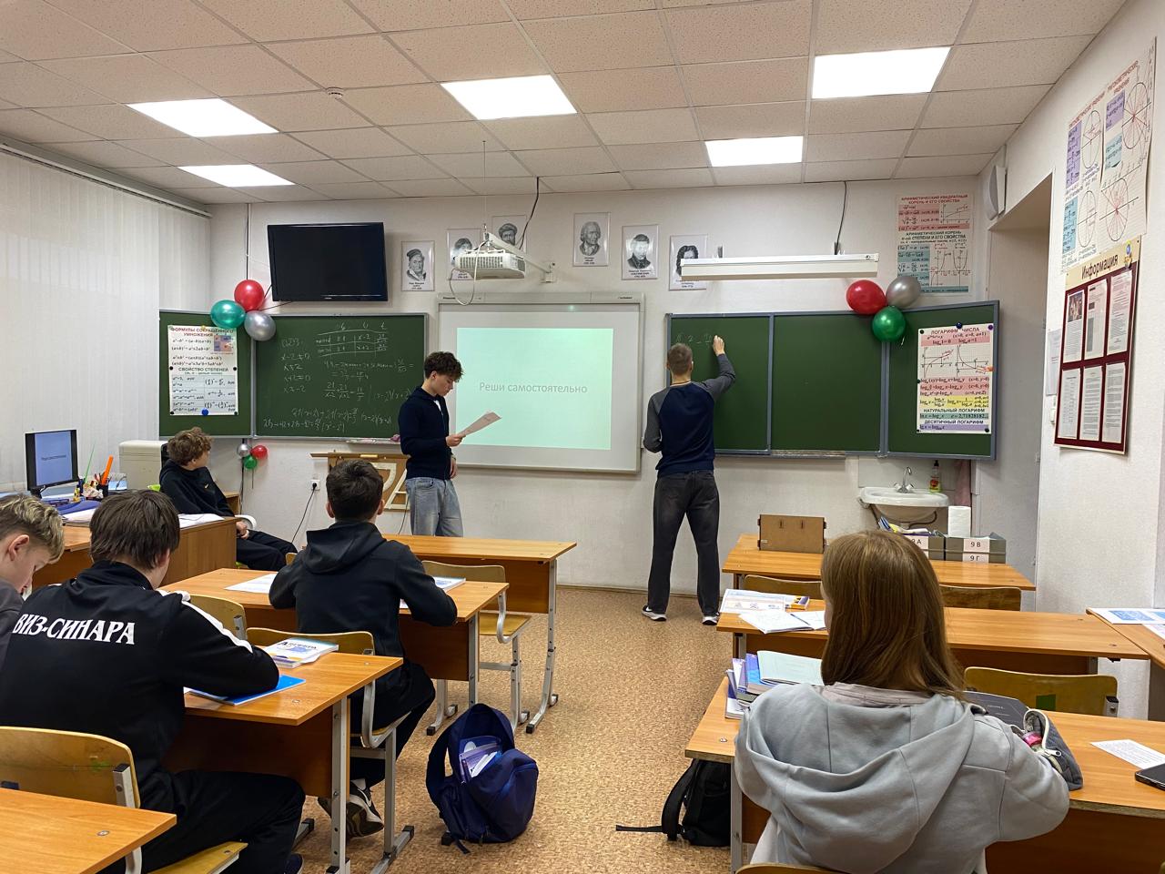 Учитель математики Медведева Ольга Петровна провела урок самоуправления, в рамках которого учащиеся 9 А и 9 В классов — Логинов Анатолий, Гафаров Руслан и Зубцов Михаил — подготовили и провели для своих одноклассников уроки по алгебре на тему «Решение текстовых задач с помощью уравнений».