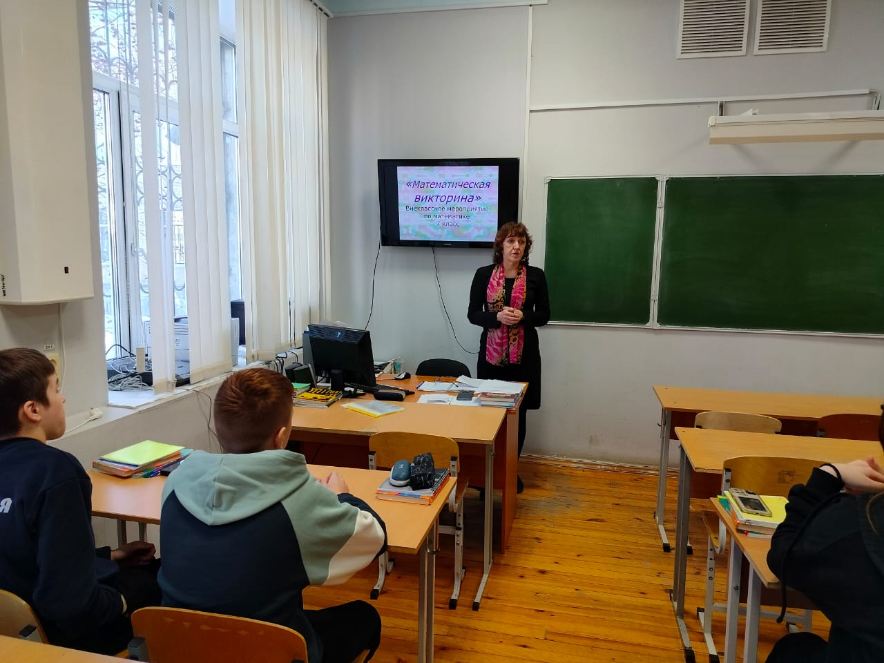 Для 7 "В" класса Русина Татьяна Григорьевна провела математическую викторину. Мероприятие проходило в игровой форме и включало категории: город великих математиков, пословицы, веселые задачи и страна Геометрия. Викторина прошла весело и познавательно, что способствовало развитию интереса к математике среди учащихся.