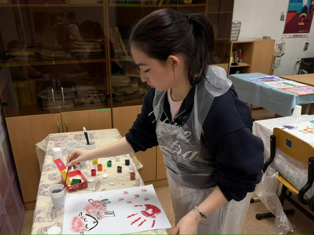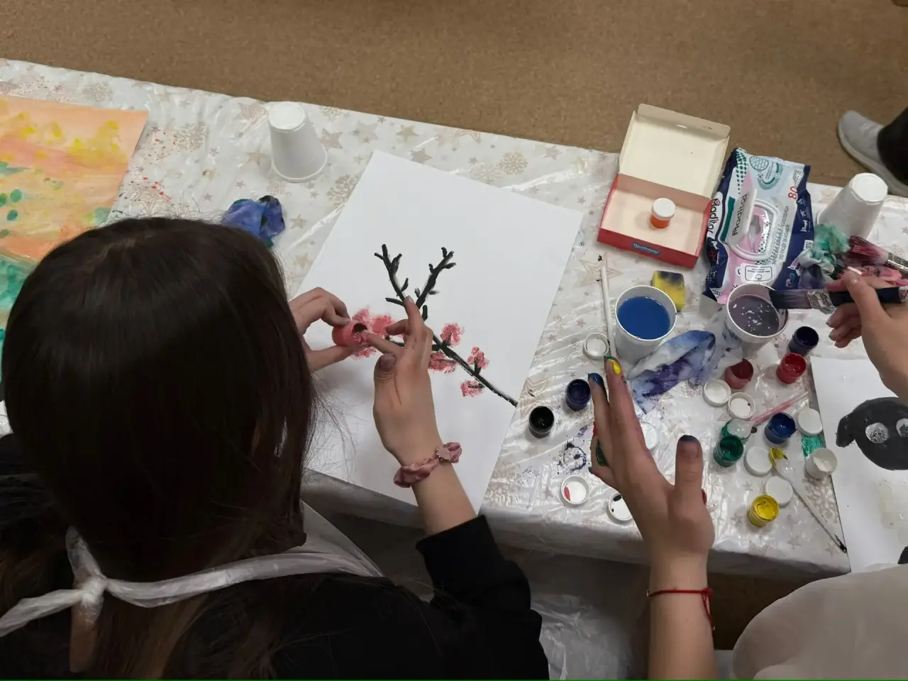 В ходе мероприятия участникам было предложено выйти за рамки привычных техник и попробовать рисование различными способами: руками, кистями, губками. Такой формат позволил каждому включиться в процесс на уровне ощущений, снизить контроль и дать пространство спонтанности и творчеству.