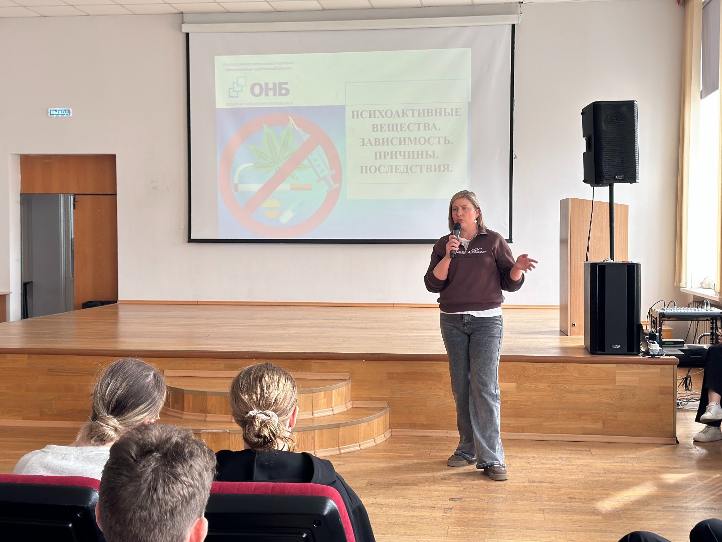 Перед обучающимися выступила специалист областной наркологической больницы. В ходе лекции эксперт подробно рассказала о природе психоактивных веществ (ПАВ), механизмах формирования физической и психологической зависимости, а также о тех тяжелых последствиях, к которым приводит их употребление. Особое внимание было уделено причинам, побуждающим молодых людей начинать употребление ПАВ, и способам противостоять негативному давлению среды.