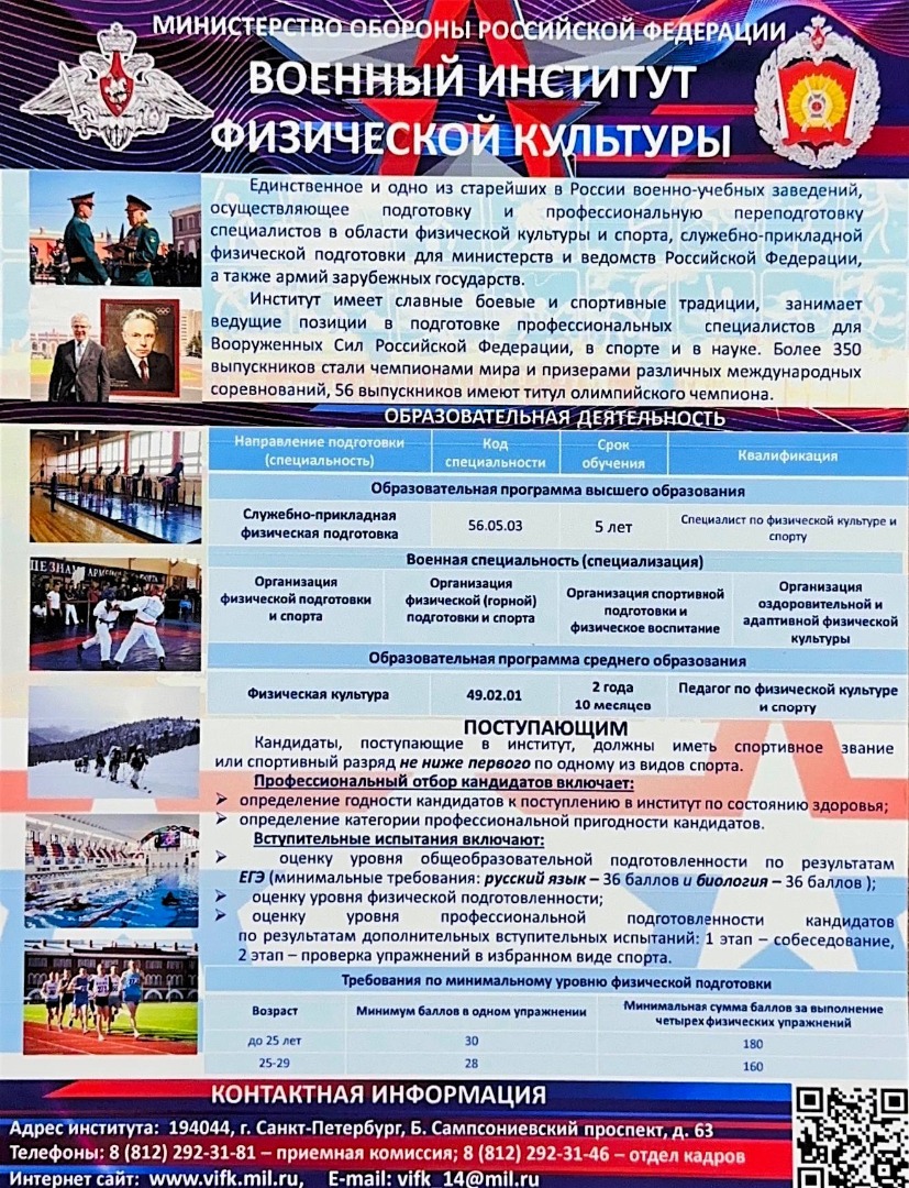 21 января для обучающихся Училища олимпийского резерва состоялась профориентационная встреча с представителями Военного института физической культуры (г. Санкт-Петербург).