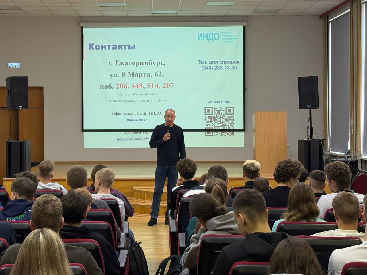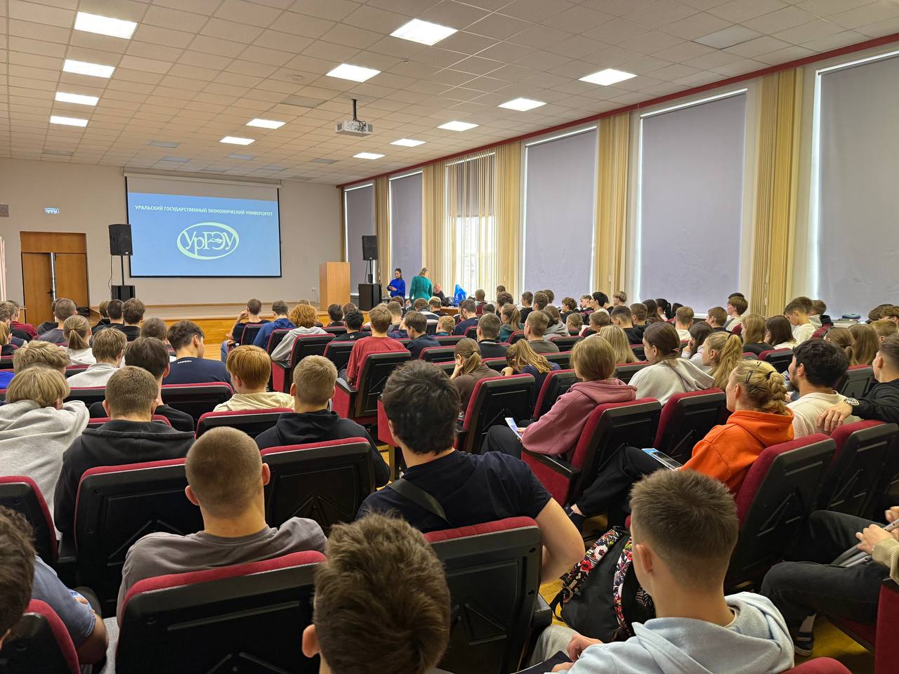 На встрече были представлены правила поступления на 2026 год, возможности задать вопросы о процессе зачисления и обучении, а также раскрыты ключевые направления подготовки бакалавриата и магистратуры Уральского государственного экономического университета.