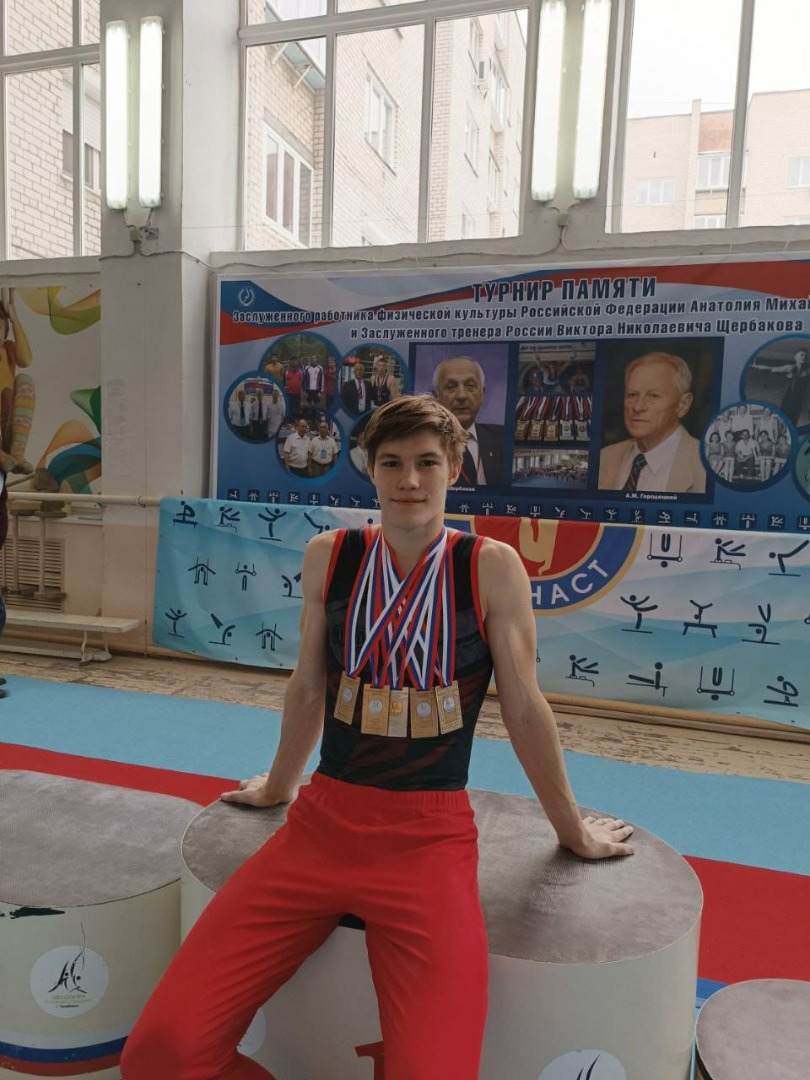 Шилков Владислав занял первое место в упражнениях на брусьях, коне и многоборье, 2 место - в упражнениях на перекладине.
