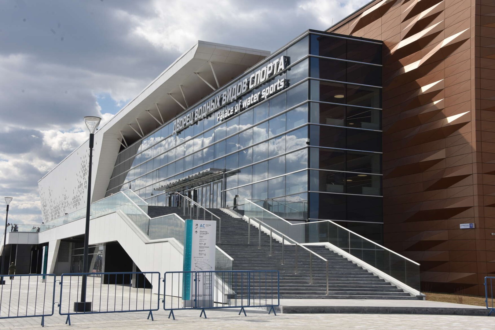 Дворец водных видов спорта — крупнейшее спортивное сооружение такого рода в стране. Общая площадь комплекса бассейнов составляет 60 тыс. кв. м. В нем находятся три профессиональных и два детских бассейна. Площадь зеркала воды всех бассейнов составляет более 3 тысяч квадратных метров. Трибуны в главном соревновательном зале вмещают 5 тысяч зрителей. Оборудованы специальные комнаты для судей и организаторов соревнований, тренеров и инструкторов. Имеются помещения медицинского назначения и контроля, раздевалки, залы для подготовительных занятий: сухой зал для подготовки пловцов, зал хореографии для синхронного плавания, сухой зал для подготовки спортсменов в дисциплине «прыжки в воду». Для разведения потоков людей на спортивном объекте продумана многоуровневая система. Для спортсменов, судей и персонала предусмотрены входы на первом уровне здания, для зрителей – на втором, откуда можно пройти к месту на трибуне.