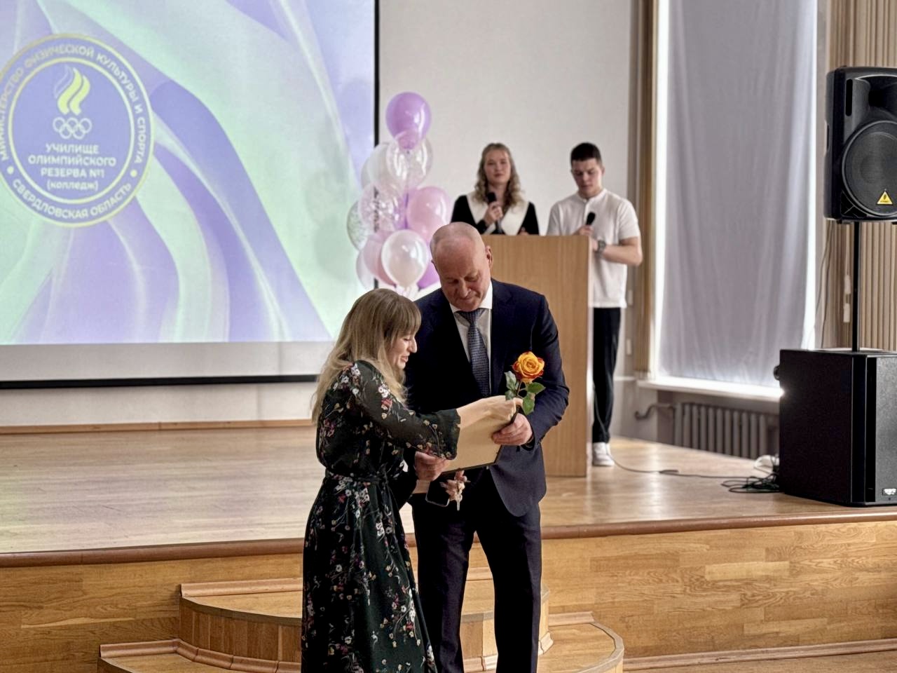 Затем состоялась торжественная церемония награждения. Заместитель министра физической культуры и спорта Свердловской области Константин Ильич Деев вручил сотрудникам училища благодарственные письма Губернатора Свердловской области Евгения Владимировича Куйвашева за многолетний добросовестный труд, высокий профессионализм и большой вклад в организацию и обеспечение образовательного процесса, а также благодарственные письма Министерства физической культуры и спорта Свердловской области за вклад в развитие физической культуры и спорта в регионе.
