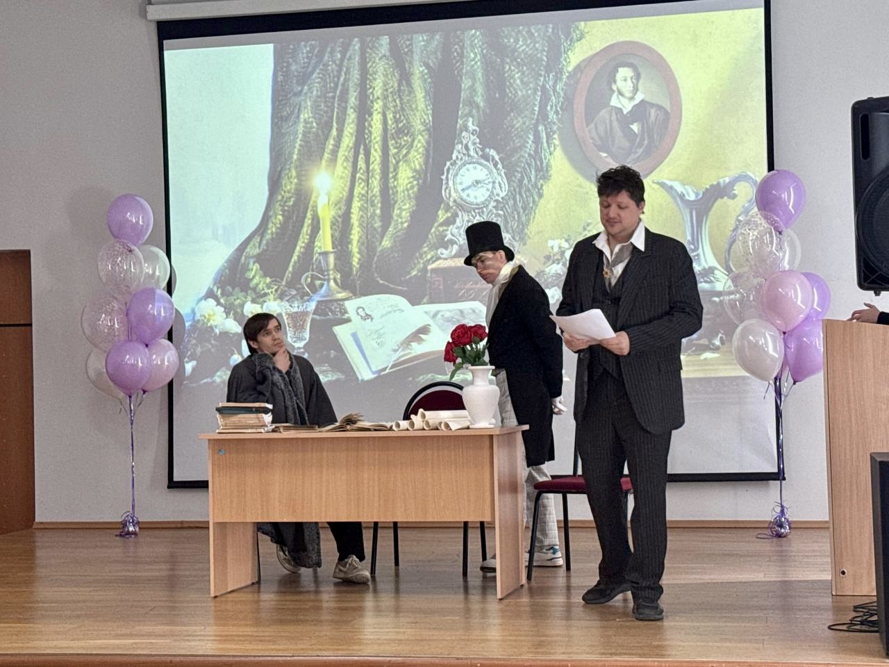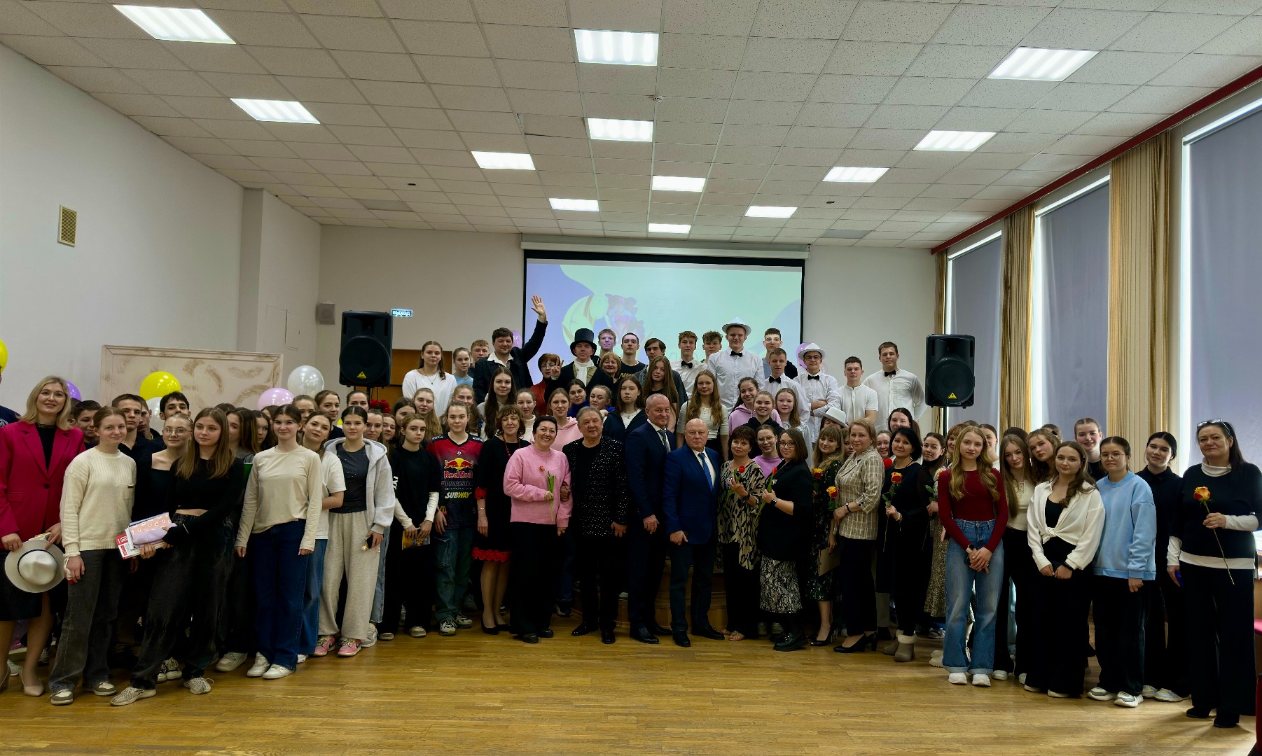Мужская половина спортсменов подготовила зажигательный танцевальный номер, вызвавший бурю оваций и восторженных криков. А завершилось торжество оригинальным поздравлением от "поэтов" – талантливые педагоги училища представили незабываемую сценку, где ожили образы Пушкина, Есенина и Гоголя. Классические строки, переплетенные с современным юмором, сделали это поздравление поистине неповторимым.