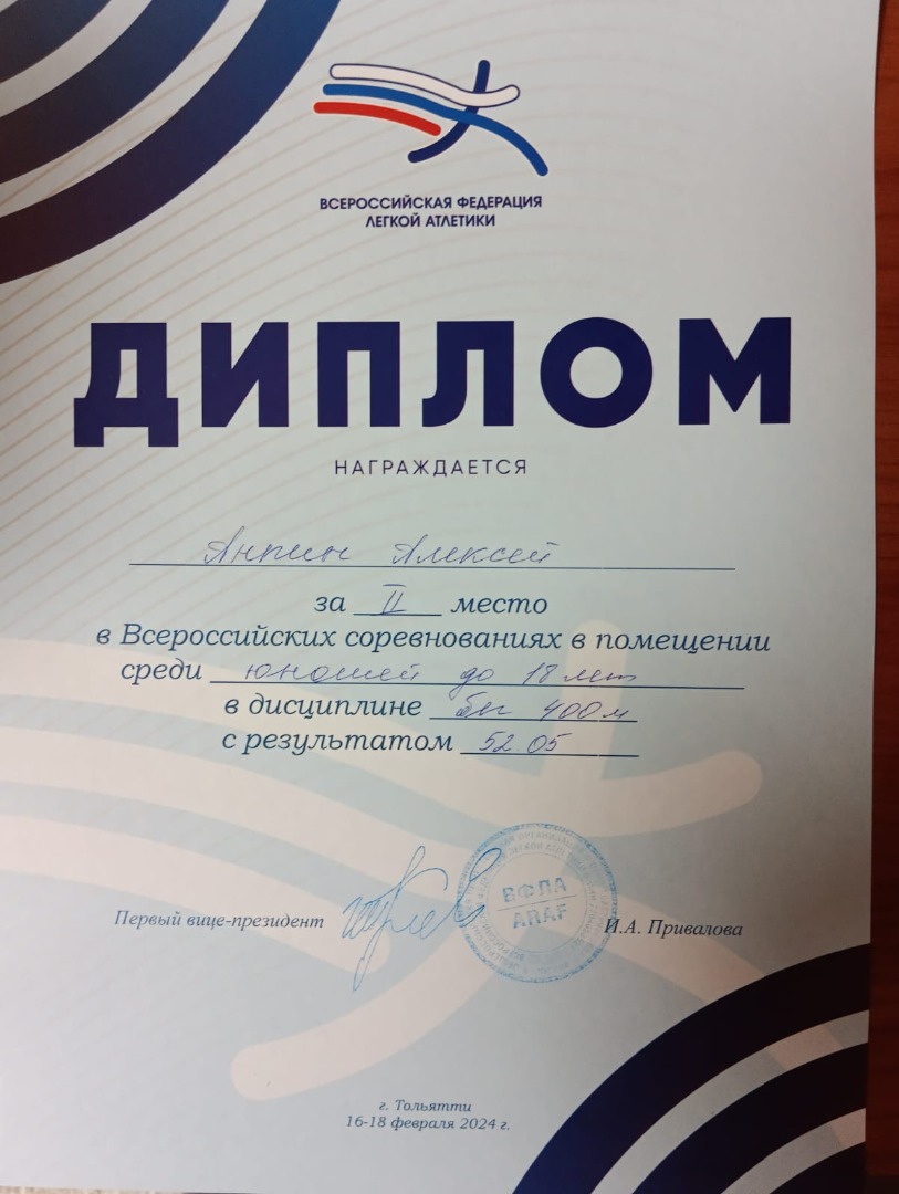 Обучающийся 9 класса Антипин Алексей занял ВТОРОЕ место в беге на 400 м. с личным результатом 51,57