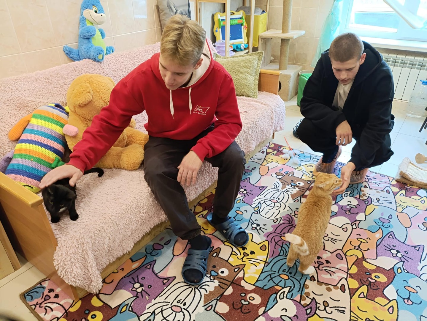 Также оформили информационный стенд в виде сердца, где разместили стихи, лозунги, информацию из уголовного кодекса о защите животных и краткую историю движения за защиту животных. Кроме того, обучающиеся посетили антикафе (котокафе), чтобы расширить кругозор воспитанников и передать корм для усатых обитателей этого заведения.