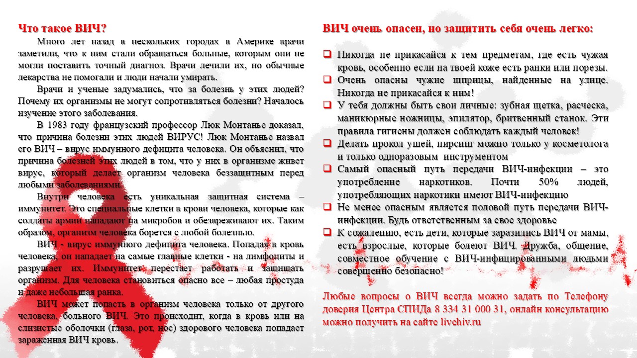 ИНФОРМАЦИОННЫЕ МАТЕРИАЛЫ ПО ПРОФИЛАКТИКЕ ВИЧ-ИНФЕКЦИИ