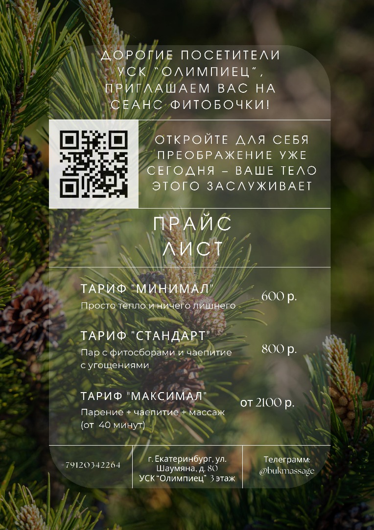 Дорогие посетители УСК «Олимпиец» приглашаем вас на сеанс фитобочки!