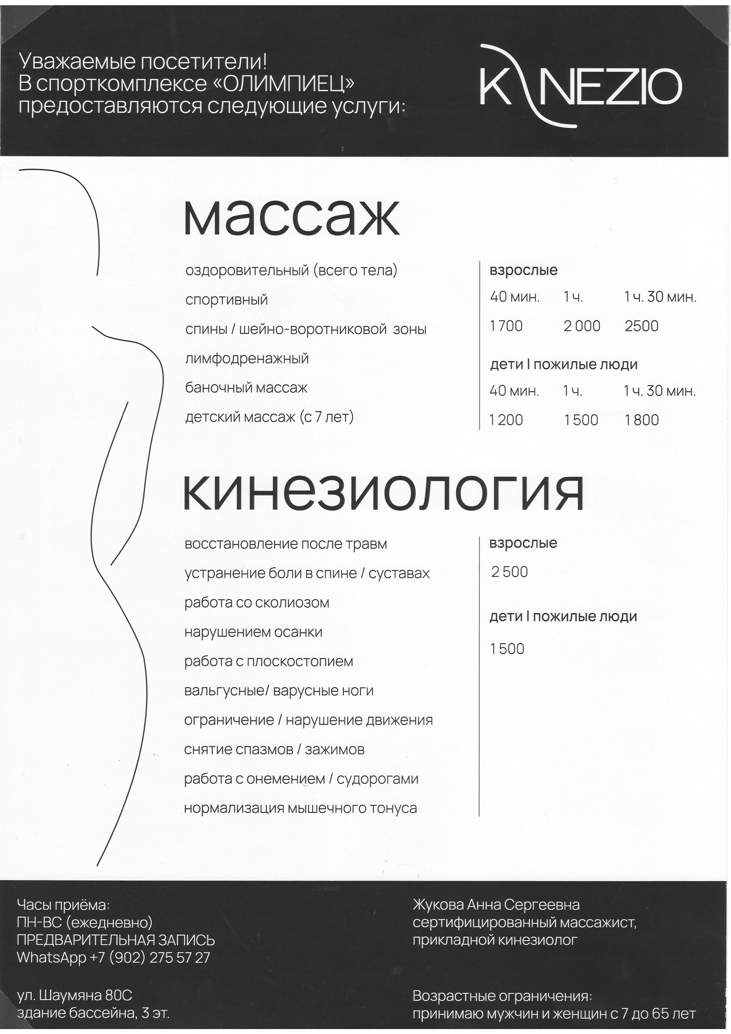 Массаж и кинезиология. Массажист Жукова Анна Сергеевна.